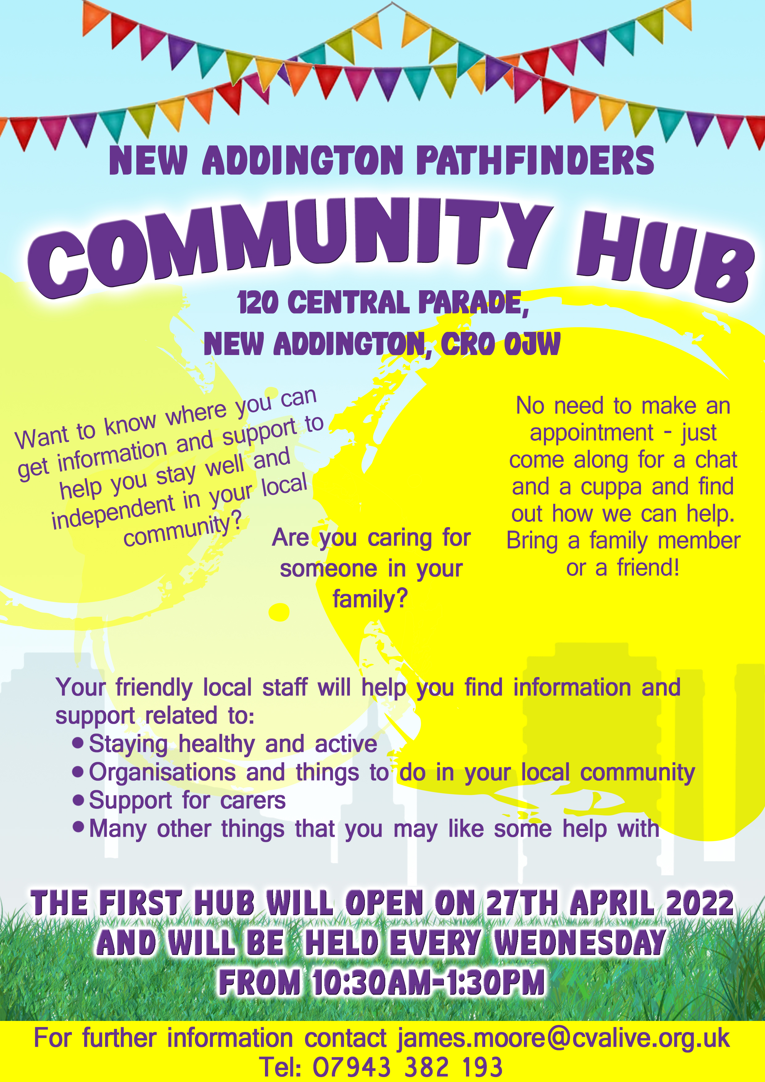 The One Croydon Community Hub for this locality is at New Addington Pathfinders. Find out more by reading the Flyer Community Hub Croydon South East