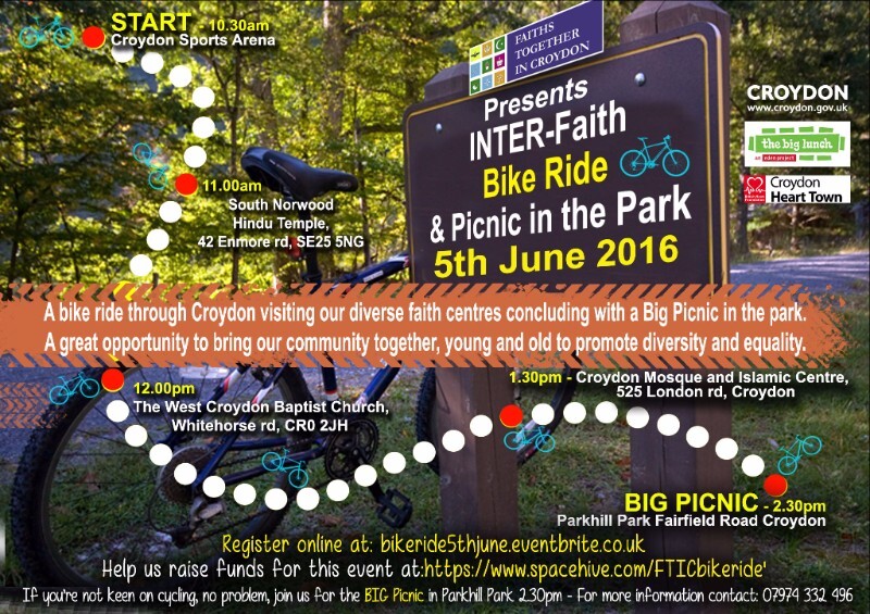 The bike ride is an inclusive cycling event which is open to all. It involves stops at various faith centres along the way and ends at Parkhill Recreation ground for a Big Lunch interfaith picnic.