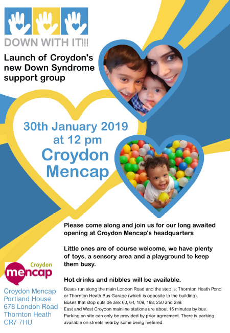 Croydon Mencap are excited to be launching Croydons new Down Syndrome Support Group and invite you along. It starts at 12pm, little ones are welcome, and refreshments will be served.