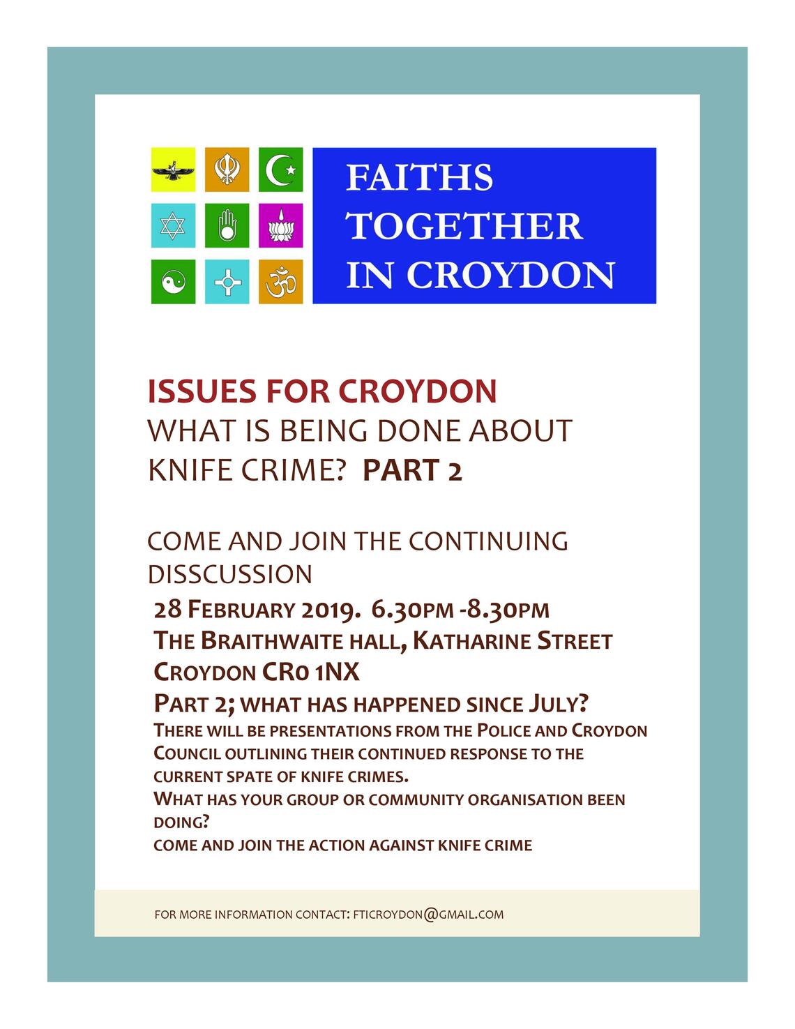 There wil be presentations from the police and Croydon Council outining their continued resonse to the current spate of knife crimes...