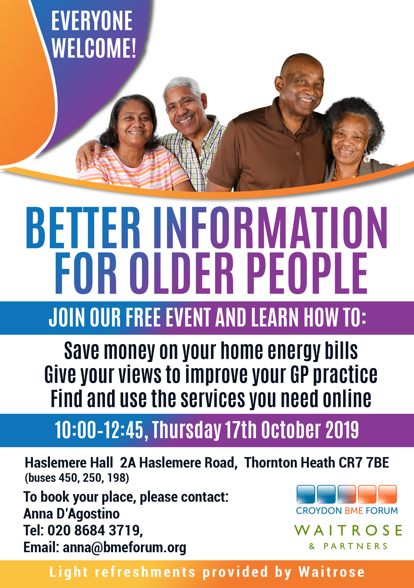Better Information for Older People. Come along to this event and learn how to save money on your home energy bill, give your views to improve your GP practice. find and use the services you need online.