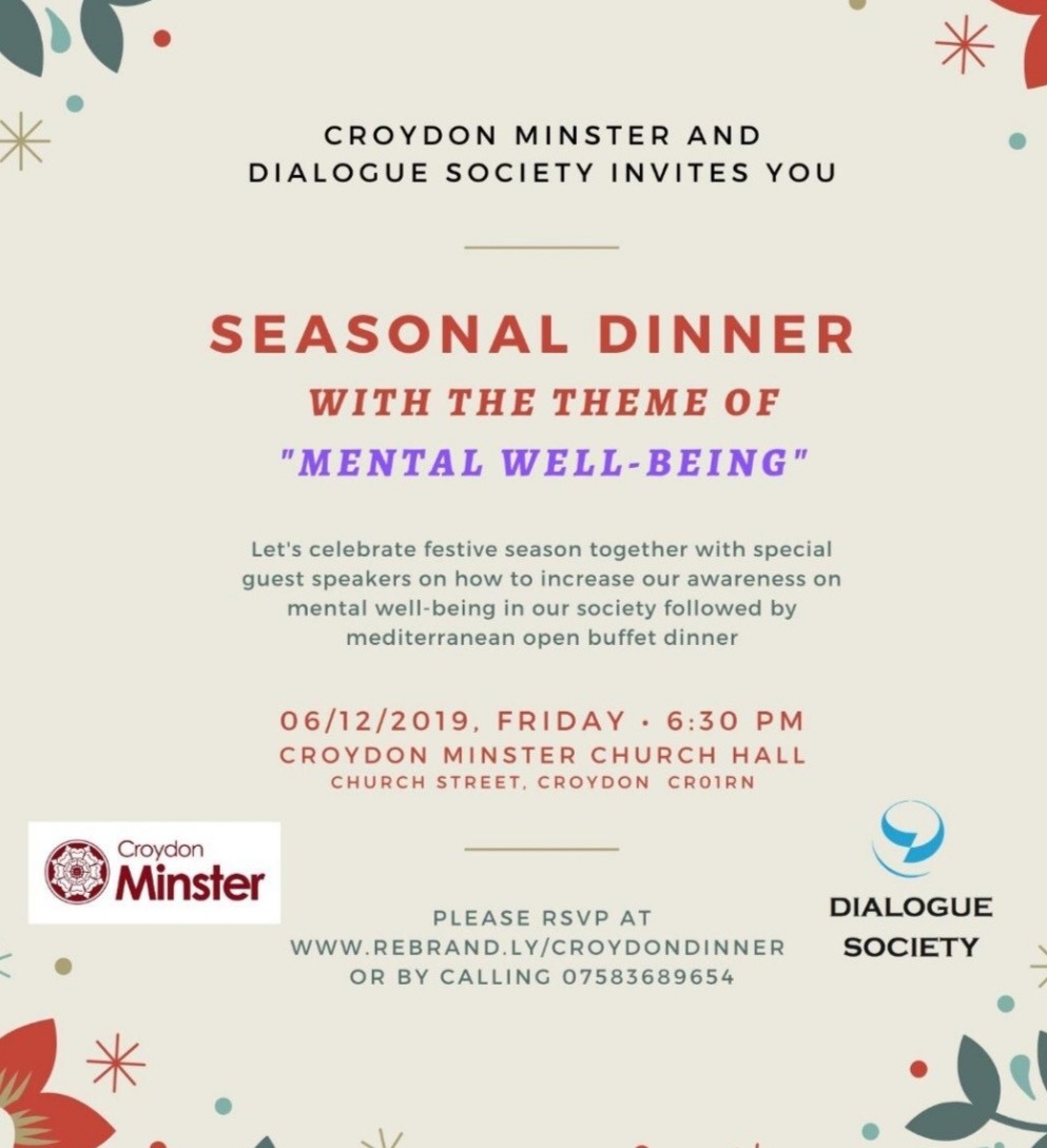 Celebrating the festive season by coming together. Speical guest speakers on how to increase awareness on mental health and wellbeing in our society followed by a mediterranean style open buffet.
