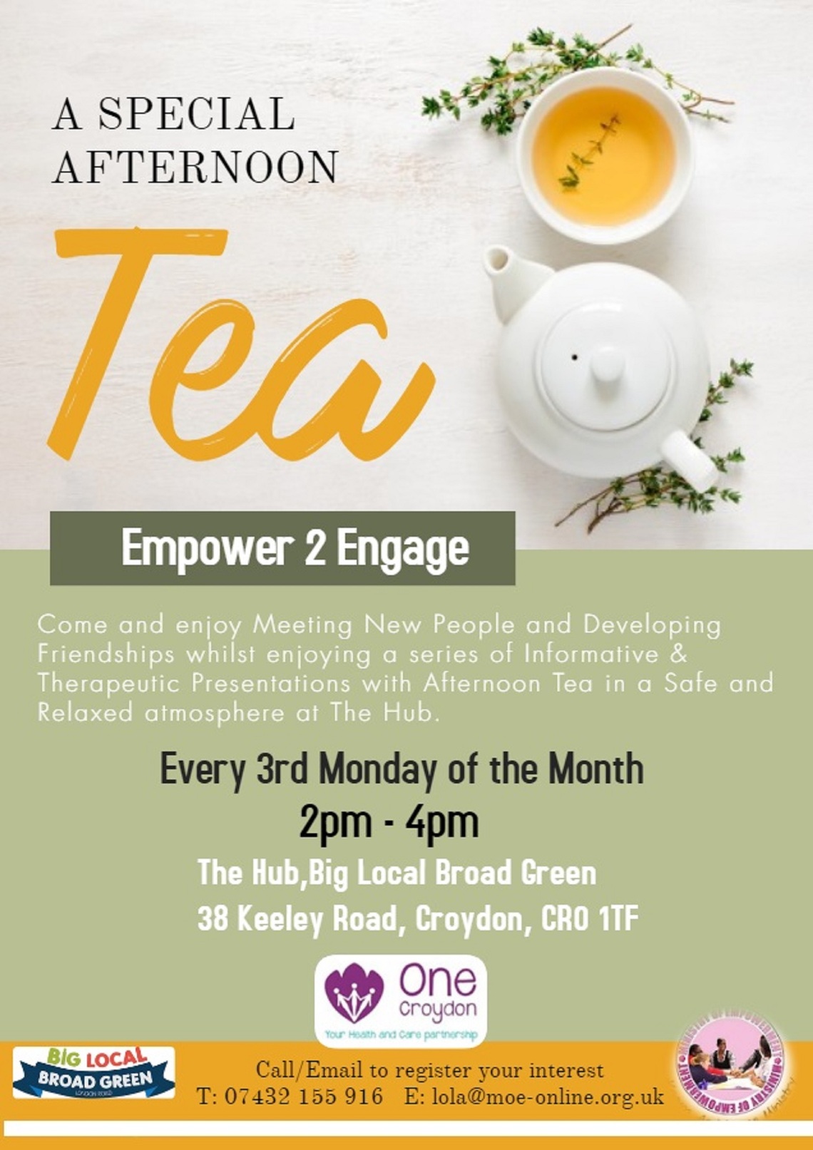 Empower 2 Engage is a project offering a special afternoon tea on the 3rd Monday of each month for women aged 55+ to meet new people, develop friendships, and take part in informative and therapeutic presentations . Download a flyer about this project.