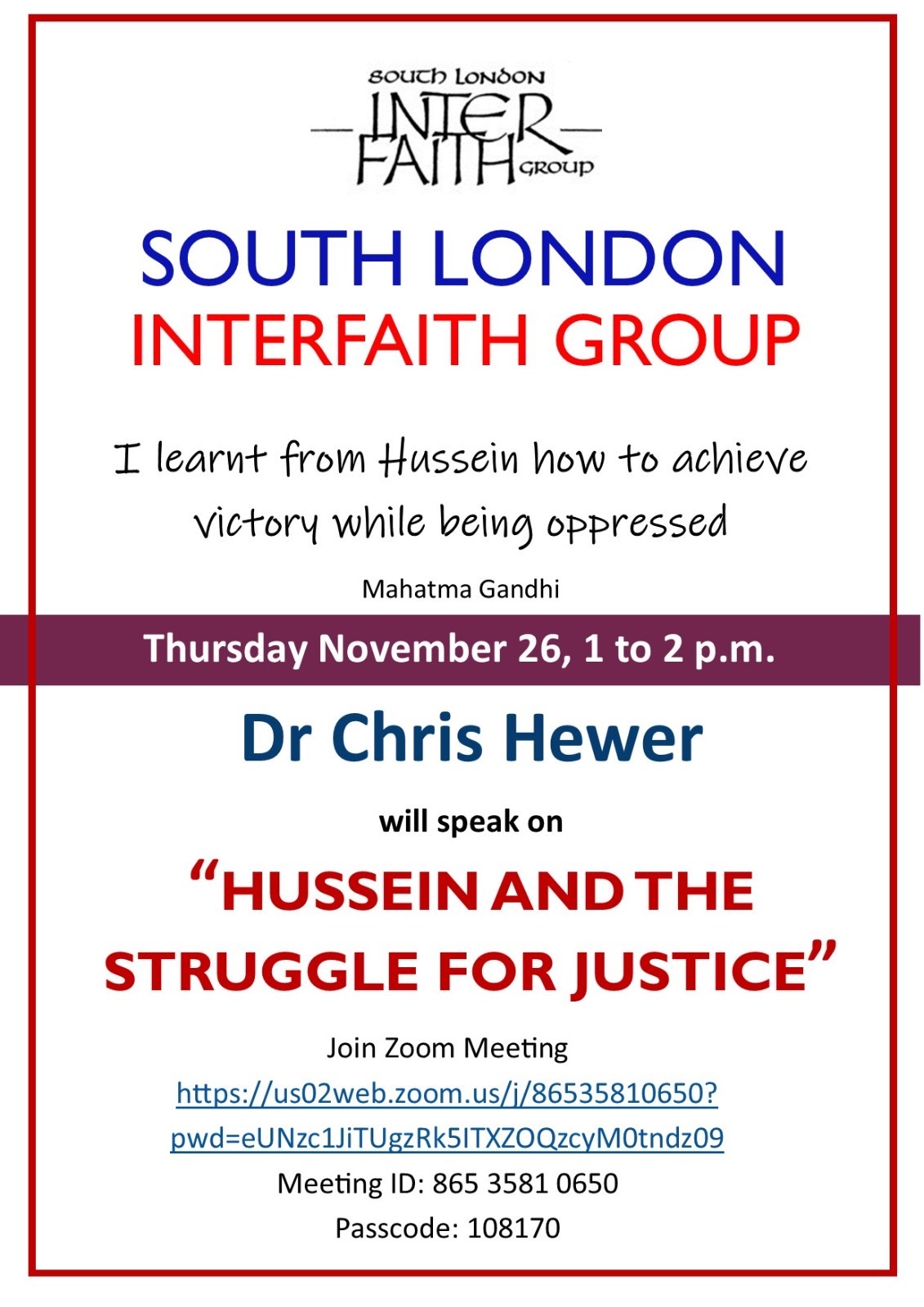 Qjuote from Mahatma Ghandi 'I learnt from Hussein how to achieve victory while being oppressed',