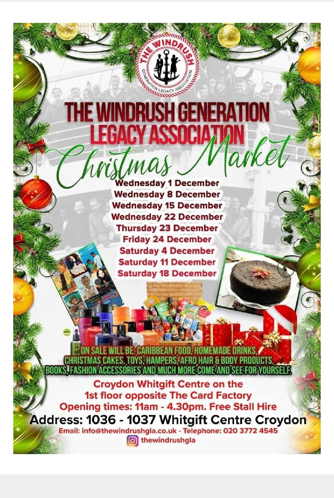 The Windrush Generation Legacy Assoication are organising the Christmas Market on the following dates in December: