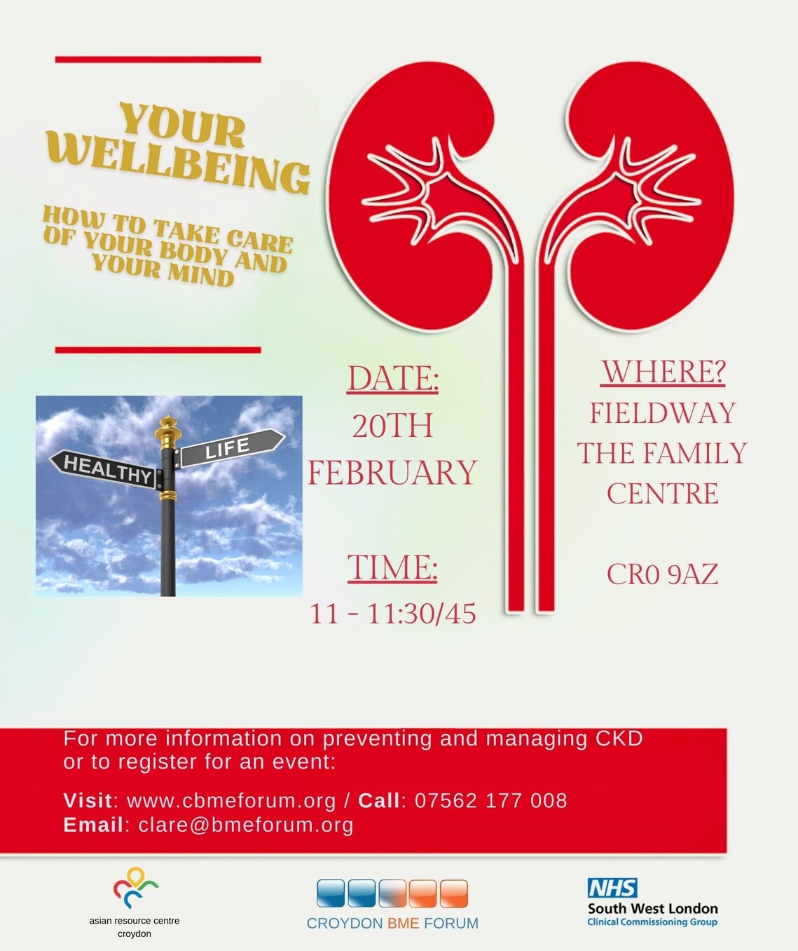 Join us at the Fieldway Community Hub, at The Family Centre, where BME Forum's Clare Bankson will be giving a talk on Wellbeing, taking care of your body and mind.