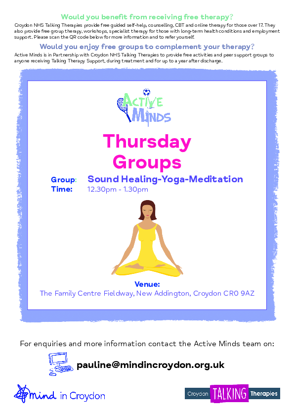 Active Minds invites you to come along and participate in these wellness sessions for better mental health and wellbeing.