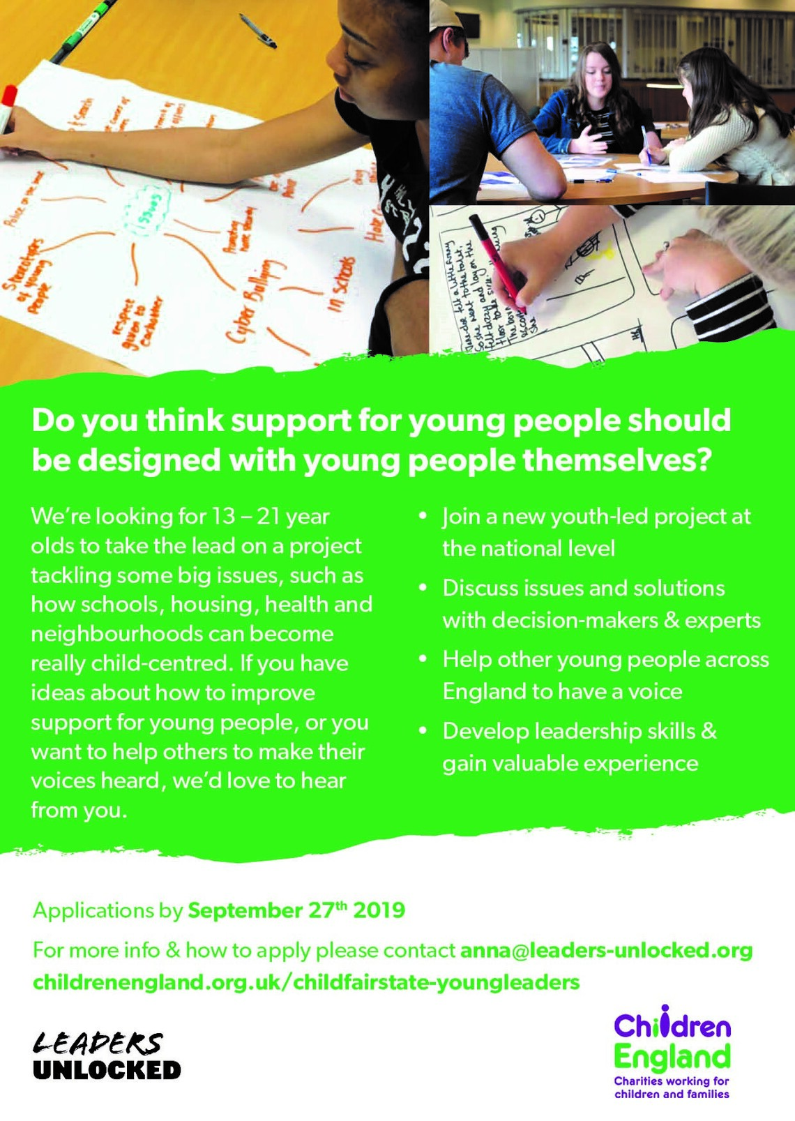 Leaders Unlocked are working with Children England on the above exciting new youth-led project and are now recruiting a team of 25 young people to form the core leadership team, to design and deliver the research project.