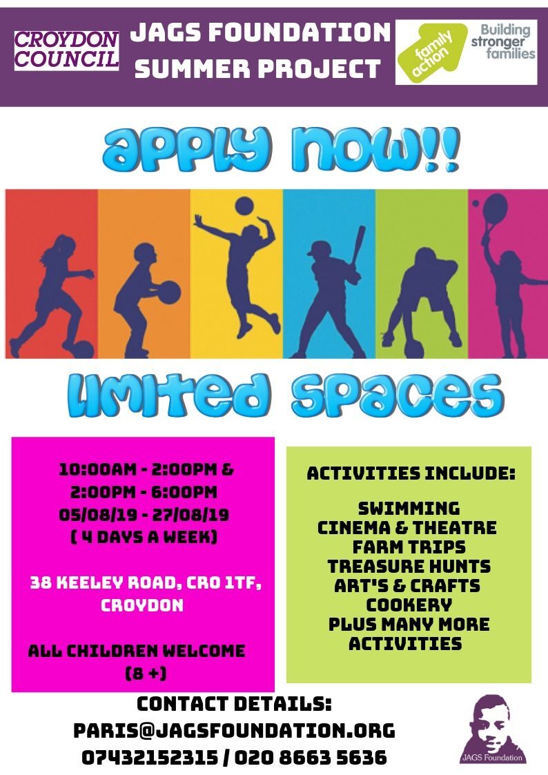 The JAGS Foundation are offering lots of activities in their Summer Project including: swimming; cinema and theatre; farm trips; treasure hunts; arts and crafts; cookery