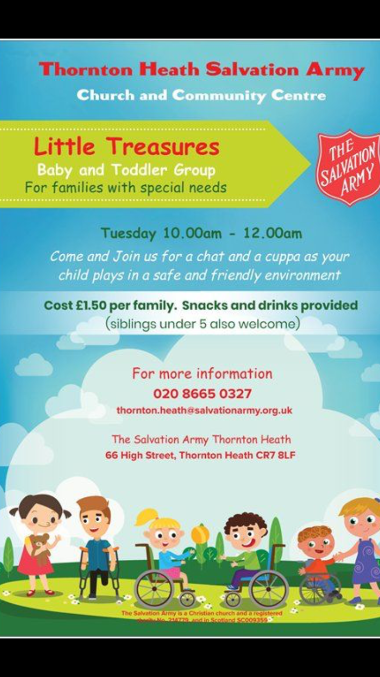 Little Treasurers is a baby and toddlers group for families with special needs. It meets every Tuesday morning, from 10.00am - 12.00pm,.
