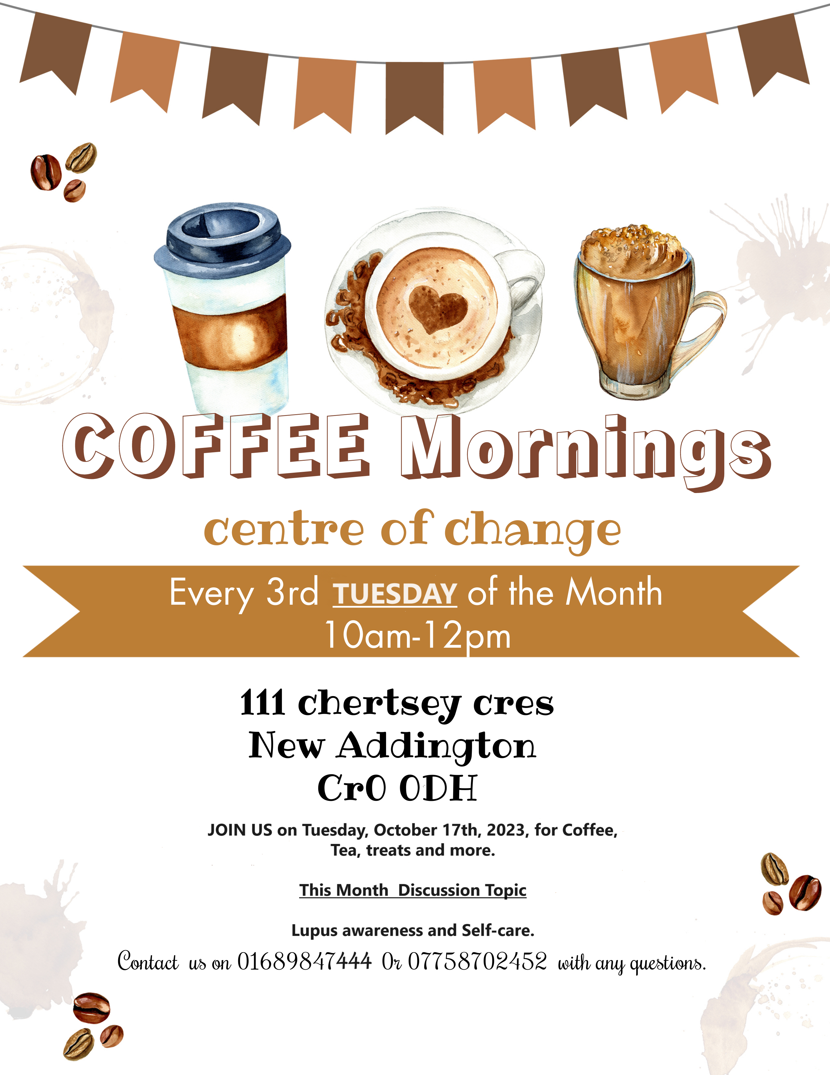 Coffee with a Counsellor: West Croydon Methodist Church CR0 2RF. Every 2nd Wed each month from 10:00 -12:00E: events@msfoundations.co.uk | T: 07985603089 | W: www.msfoundations.co.uk